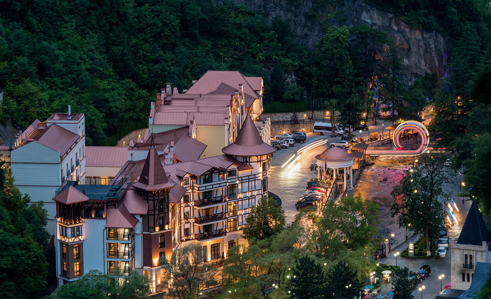 المدينه الساحرة و التى تقع على مساحة 1.189 كم2 حيثأصبحت مرادفاً لمنتجع صحي والمياه المعدنيه في جورجيا.حيث البيئة النقية تعطي المياه المعدنية المذاق المميز والكبريتي ويتم الحفاظ عليها بشكل جيد في غابات منتزه بورجومي-خاراغولي الوطني و البقاء لبعض الوقت لتستمتع بالاجواء الجميله و الجو المنعش الرطب, في المتنزه ، حيث يقع الدير الاخضر الذي يعود تاريخه إلى قرون ،حيث صُنع من أحجار خضراء اللون